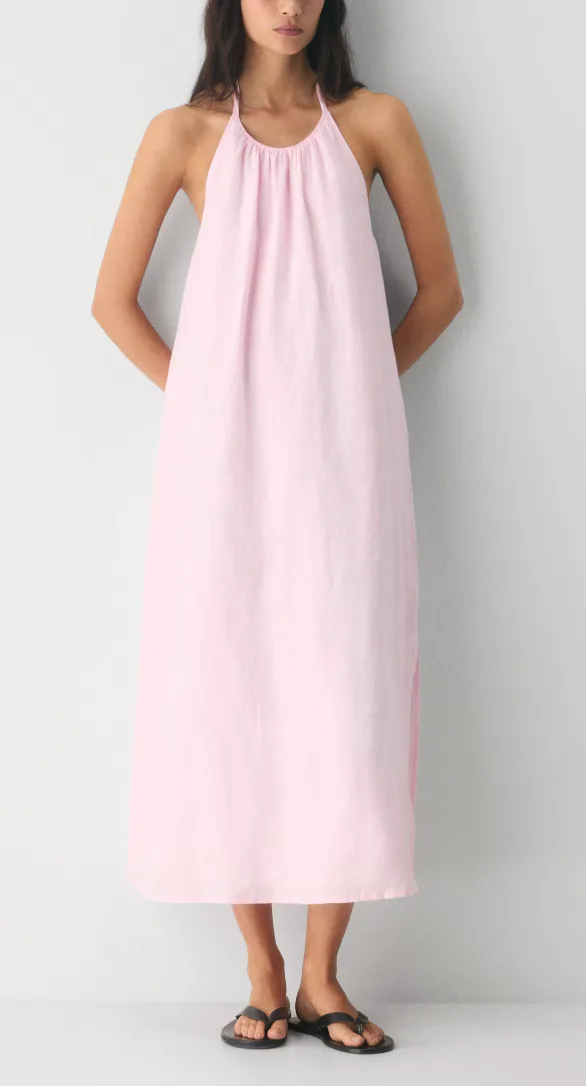Planning a trip to Europe and unsure what to pack? This stunning baby pink flowy dress is the perfect choice. It can be effortlessly dressed down with Havaianas flip-flops or elevated with wraparound heels and a beaded bag.